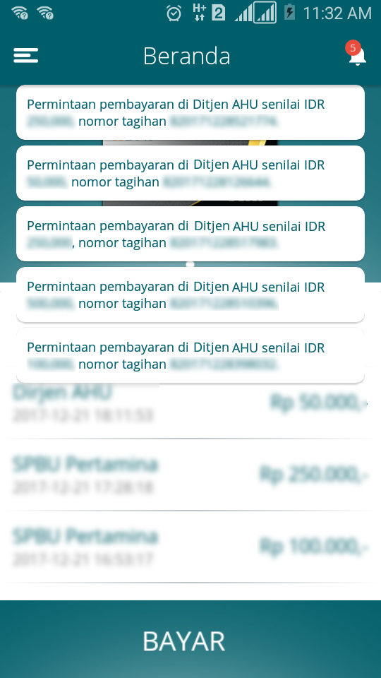 Setelah melakukan Pemesanan Voucher maka Pengguna akan mendapatkan Notifikasi di Aplikasi YAP, Klik